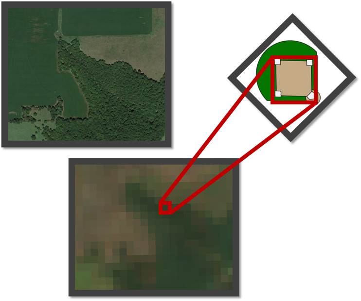 Landsat is a satellite program jointly operated by the US Geological Survey and NASA that has been collecting comparable images of the earth continuously since 1984. It collects complete imagery for the globe every 8 or 16 days, and has collected more than 9 million earth images. It is considered a moderate spatial resolution satellite, with 30-meter pixel sizes. This means that each pixel measures about the size of a baseball diamond.