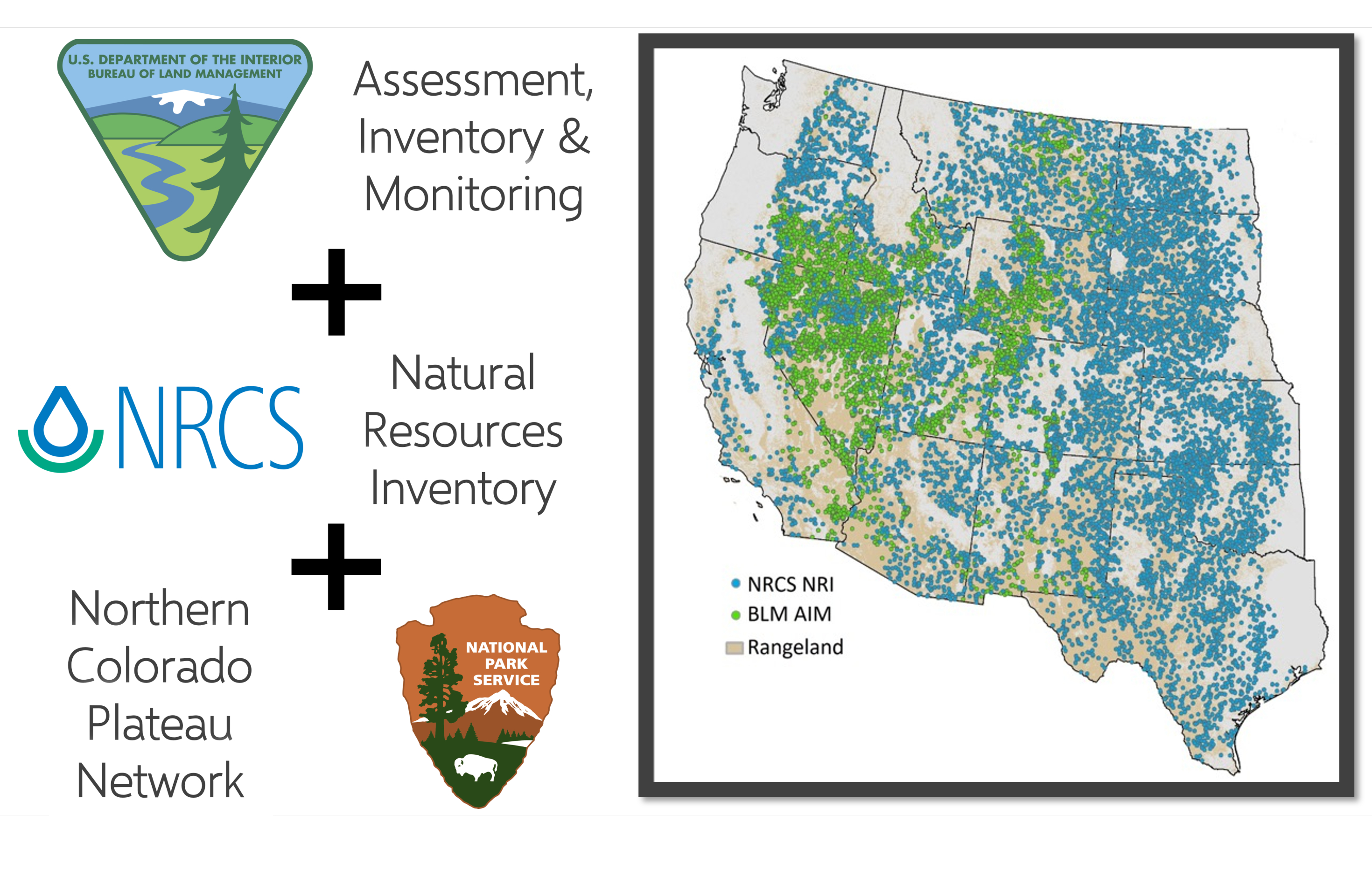What types of satellite imagery and field data are we talking about? Essentially, the RAP uses: 1) satellite imagery from the Landsat program and 2) field vegetation data from the Natural Resources Conservation Service’s Natural Resources Inventory (NRI), Bureau of Land Management’s Assessment, Inventory, and Monitoring (AIM), and National Park Service Northern Colorado Plateau Network (NCPN) programs.