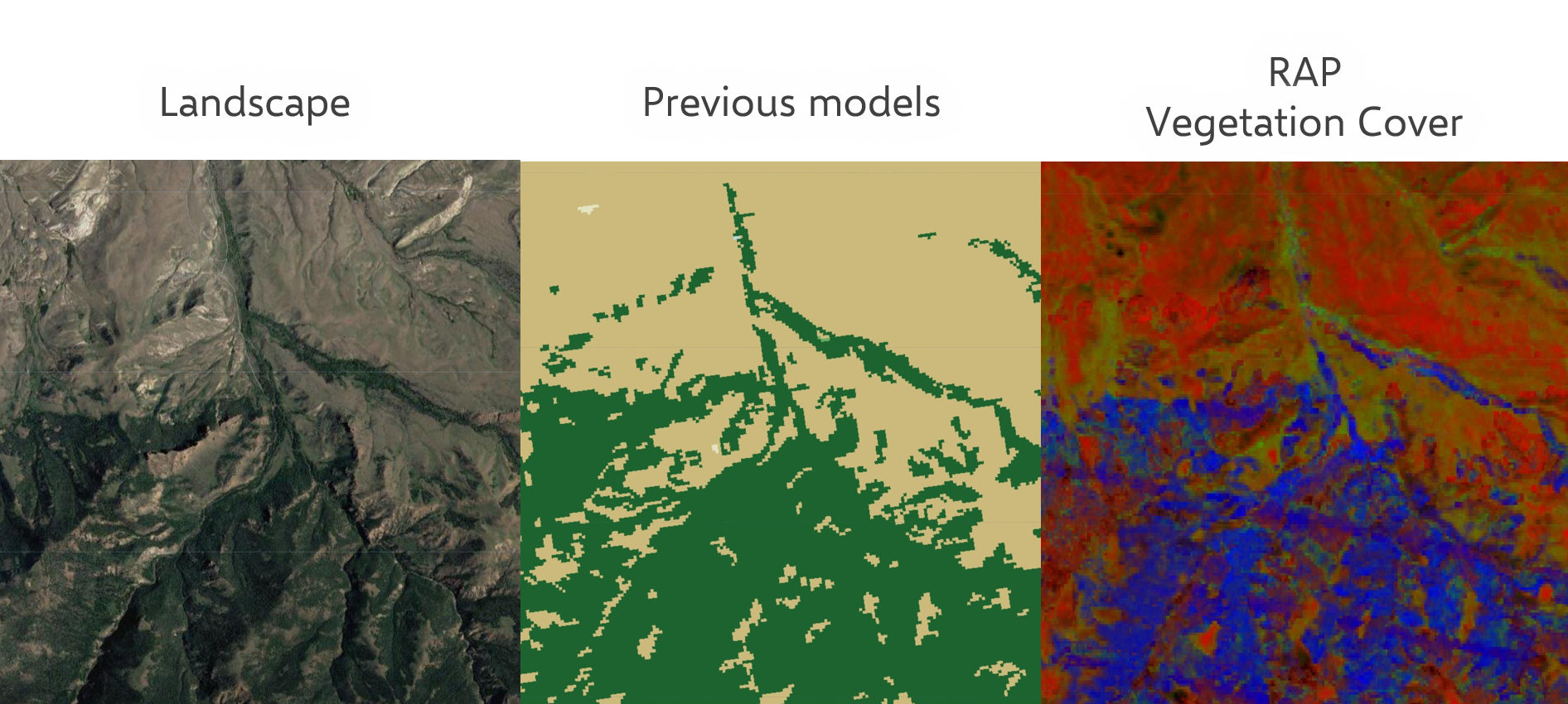 More specifically, this model calculates vegetation productivity based on how efficiently a plant uses absorbed solar radiation to add biomass considering local temperature and moisture conditions. This type of light-use efficiency model has been in use in ecology for nearly 50 years, but the iteration in RAP is an improvement over previous versions for a variety of reasons we’ll explore here.