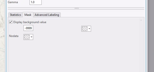 - Right click the newly added raster layer -> Symbology -> Mask -> Check Display background value -> add -9999 to the box below that check.